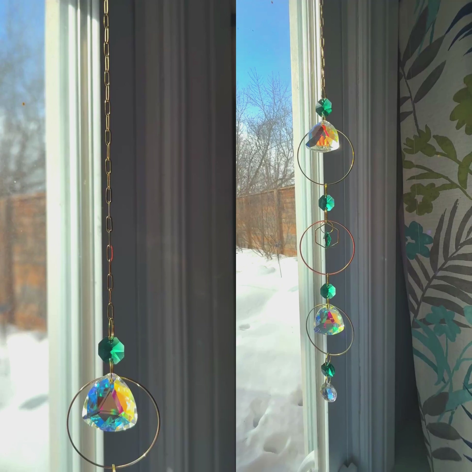 - Four 14mm Prisms, one 18mm Mini Mosaic Prism + a two 30mm Aurora Borealis Triangle Prisms scatter light.